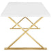 | Featured-0 | Modern Dining Table MDF with High Gloss Laminate Comfortably Seats Up To Six Polished Gold Stainless Steel X-Base With Felt Pads Assembly Required | |
