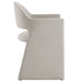 The Talia Upholstered Dining Chair is a stunning example of modern design, blending clean lines with luxurious comfort. Whether as a stylish living room accent chair, a statement piece in the dining area, or even a chic office accent chair, the Talia Barrel Back Dining Chair offers both timeless style and versatility. Built on a sturdy bentwood frame, this dining chair with arms is fully upholstered in soft slub weave fabric for a premium feel. Its elegantly curved backrest flows seamlessly into angular armrests that extend down to the floor, creating a sculptural look that's perfect for minimalist and contemporary spaces. The open-back design of this curved dining chair provides a light and airy feel, while the generously padded seat ensures lasting comfort. Completing the design, floor-protecting foot pins are included to prevent scratches, making it easy to move and enjoy without worry. The Talia Dining Armchair arrives fully assembled, ready to elevate your space. Weight Capacity: 300 lbs.