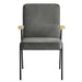 Perfect for various settings in the dining room or living room, the Vista Dining Chair offers a seamless blend of functionality and style. Its powder-coated metal frame grants durability, while the wooden arms add a touch of warmth, epitomizing mid-century modern flair. This metal and wood armchair has an upholstered fabric seat, complete with dense foam padding, French piping trim, and a comfortable recline, inviting you to sit back and relax. Equipped with non-marking foot glides, the Vista upholstered dining chair with arms protects your floors from scratches. Whether used as a dining armchair, an accent chair in the living room, or a waiting room chair, Vista stands out for its comfort and versatility, making it an essential modern addition to any space. Assembly required. Weight Capacity: 500 lbs.