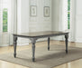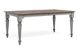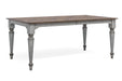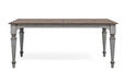 Dine and entertain in charming vintage style with the Plymouth rectangular dining table, featuring intricately turned legs for an appealing look. A distressed graywash finish contrasted by a medium brown top adds cottage-inspired character. Accommodate extra dining guests with two removable leaf inserts that increase tabletop space and then conveniently store away when not needed.