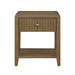 Designed as a versatile accent, the Reed chairside table blends transitional design with a relaxed coastal influence. Reeded detailing adds subtle texture, while the Driftwood Oak finish brings warmth to its clean, compact silhouette. Antique brass seashell knobs introduce contrast and a coastal note. A soft-close drawer provides convenient storage, making this piece a refined and practical companion beside seating.