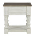 What a fresh interpretation of country classic style. Inspired by American farmhouse craftsmanship, but with an elevated sensibility, this square end table blends distinctive details such as turned post accents and raised drawer fronts for a substantial look that feels right at home. Those who appreciate rustic character should take note of the table’s thick crown moulding, beautified with a vintage two-tone finish. Robust legs lend a hearty, substantial feel ready to withstand the test of time.