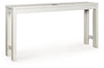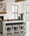 | Details | Includes counter height dining table and 3 counter height bar stools, Table made with hardwood solids, ash veneer and MDF substrates, Stools made with sturdy solid wood frame, Antiqued white finish with grain textures, Polyester upholstery, Foam cushioned seat, Nailhead accents, Table includes 110V power supply with dual USB-A/USB-C charging ports, Power cord included; UL listed, Assembly required | |
