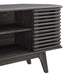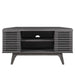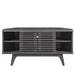 Tap into mid-century aesthetics with the Render 46� Corner TV Stand. Render features smooth walnut grain veneer, four solid wood tapered legs, non-marking foam foot pads, adjustable shelves, and two slatted sliding doors for sophisticated media storage. Complete with a cable management hole, Render�s contemporary linear style is the perfect addition to the modern living room, lounge, or recreation area. With slanted sides, this corner media stand accommodates TVs up to 50". Assembly required.