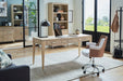 The hallmark of this design is the natural Biscotti finish and the use of texture, wood grain and inlay patterns to subtly tease the eye. The brushed stainless metal legs and uniquely designed hardware provides a subtle contrast. The transitional style will fit flexibly into multiple interior styles and spaces.