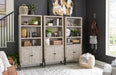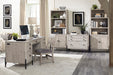 The contrast between the lightly textured parchment finish and matte black metal hardware provides a clean, contemporary look and timeless style. Cleverly scaled and full of functional features such as power outlets, USB ports and drop front drawers. Modular pieces can be configured to meet the unique needs of space and utility.