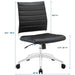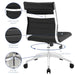 | Featured-0 | Armless modern midback office chair Vinyl cushion rolls along back rest Chrome-plated aluminum frame Height adjustable Padded vinyl seat Back tilt lever and control knob Weight Capacity is 330 lbs. Assembly Required | |