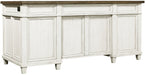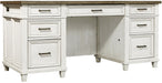 This farmhouse inspired collection brings warmth and richness to your work environment. The cases have generous proportions, molding on the drawers and a wide pilaster that rests upon a squared, tapered foot. The tops are a neutral, brown finish on Birch and Oak veneer to compliment the white painted finish.