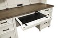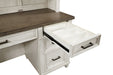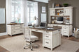 This farmhouse inspired collection brings warmth and richness to your work environment. The cases have generous proportions, molding on the drawers and a wide pilaster that rests upon a squared, tapered foot. The tops are a neutral, brown finish on Birch and Oak veneer to compliment the white painted finish.