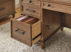 Hensley offers a classic, transitional style in a warm honey finish with beautiful aged brass finish hardware. Enjoy functional features throughout such as built-in AC & USB outlets, drop front drawers, adjustable height controls, removable dividers, locking file drawers, generous storage, cord management and so much more.