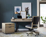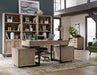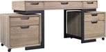 Offering a relaxed contemporary look from the complex organic finish to the contrasting metal accents and hardware. Functional features such as built-in AC & USB outlets, hidden compartments, locking file drawers, and drop front keyboard drawers make this an easy choice for your workspaces.