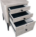 The contrast between the lightly textured parchment finish and matte black metal hardware provides a clean, contemporary look and timeless style. Cleverly scaled and full of functional features such as power outlets, USB ports and drop front drawers. Modular pieces can be configured to meet the unique needs of space and utility.