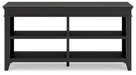 | Details | Made with solid wood frames, elm veneer and MDF substrate, Vintage black finish, Open storage, 2 adjustable shelves, Assembly required | |