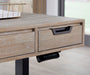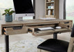 Offering a relaxed contemporary look from the complex organic finish to the contrasting metal accents and hardware. Functional features such as built-in AC & USB outlets, hidden compartments, locking file drawers, and drop front keyboard drawers make this an easy choice for your workspaces.