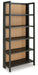 | Details | Made with solid and engineered woods, Rattan back with natural finish, Sandblasted black finish, 5 fixed shelves, Assembly required | |