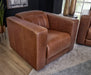 - Fully upholstered in a classic top-grain leather that showcases its natural characteristics and will develop a patina over time, resulting in a unique piece for your home