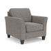 Libby is a transitional stationary style with clean lines and graceful curves. Its off-the-floor frame is complimented by square tapered legs. This chair features an elegant roll arm with a detailed welt trim. The posh and plush style of Libby fits in with many home décor spaces.