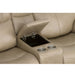 Superior ergonomics combine with the plush comfort of the Crew leather power reclining loveseat with console. Featuring triple power functionality that allows for independent adjustment of the headrests, lumbar supports and recline, this loveseat also features Zero Gravity which reduces pressure and tension on the body. Enjoy reliable comfort all day, every day, with pad-over armrests, waterfall chaise footrests, thin layered headrests, and divided back cushions. Built-in USB ports conveniently charge mobile devices while a center storage console keeps remotes and beverages nearby so you can settle in for a marathon movie night. With Flexsteel's patented Blue Steel Spring™ at the heart of each seat, and high-quality light tan leather, the Crew power reclining loveseat brings exceptional beauty and durability to your home.