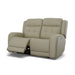 Enjoy the beauty of well-designed lounge furniture and the comfort and convenience of a recliner with the Grant leather power reclining loveseat with console. Plush back cushions, contoured seats and footrests with ample padding provide support, while a convenient center console offers storage for remotes, beverages and more. This sofa is built with Flexsteel's patented Blue Steel Spring™ system, offering a mix of flexibility and durability. Easy-to-access power controls on both sides of the recliner allow sitters to independently adjust the recline and headrests, while a built-in USB port allows you to conveniently charge devices. Premium ivory white leather enhances the elegant look of the loveseat, which includes beautiful tufting on the back cushions and distinctive sloped arms with refined cross-stitching.