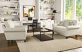 - Semi-attached back cushions remain fixed in place, ensuring a clean look and comfortable feel