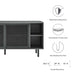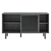 Bring urban flare to your living space with the modern design of the Kurtis 59" Sideboard. Featuring sliding metal mesh doors, this storage cabinet brings industrial design to a dining room, living room, lounge area, or hallway. This versatile display cabinet is crafted from MDF and particleboard with a natural wood grain design. Offering ample storage space for dishes, stemware, bar essentials, linens, or anything else that suits your needs, this credenza features open shelving areas partially concealed by mesh sliding doors allowing for both storage and display. Resting on sturdy wood legs with non-marking felt pads to protect flooring, this sideboard doubles as a TV stand that can accommodate TVs up to 65 inches. Assembly required. Weight Capacity: 181 lbs. Please Note: When placing the TV directly on the unit, we recommend anchoring it in place.