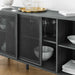 | Featured-0 | Modern Sideboard Metal Mesh Sliding Doors MDF and Particleboard Sturdy Wood Legs Non-Marking Foot Pads Assembly Required Weight Capacity: 181 lbs. | |