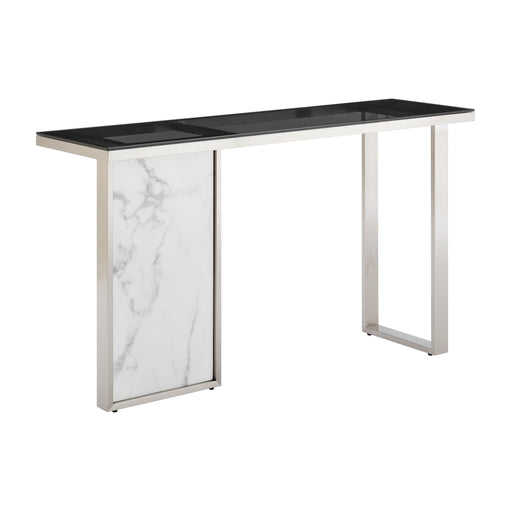 Finesse DecorThe Monolith Chic Marble Console Table is a striking combination of elegance and contemporary design. This piece features a sleek, black glass top ...