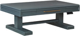 Alexander offers affordable luxury and opulent style with a Midnight finish and generously sized Champagne Bronze finish hardware. Nothing was spared when it comes to the quality, design and special features on this transitional style collection. The entertainment wall consists of gorgeous reeded glass doors, LED lighting and soft close barrister style lift doors and the adjustable cocktail table with rapid charging is a must have for innovative functionality.