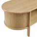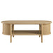 Revolutionize your home or apartment decor with the Cadence Coffee Table. This mid-century modern piece is perfect as a central table in your living room, offering both style and functionality. The unique design features curved edges and fluted details, adding a stylish flair to any space. Crafted from high-quality materials such as rubberwood, particleboard, and MDF, the Cadence coffee table is designed for longevity and showcases a beautiful wood grain laminate, enhancing the organic aesthetics of your living or lounge area. This oval coffee table is perfect for various uses, comfortably supporting books, decorative items, or beverages. It includes an open shelf underneath for displaying or organizing home decor, making it an excellent open storage coffee table as well as a modern accent table. Adjustable non-marking foot glides provide added stability. With an oval shape and chic silhouette, the Cadence fluted coffee table is a great living room essential that complements a variety of decors. Assembly required. Tabletop Weight Capacity: 169 lbs.
