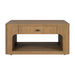 Simple geometry creates a look of timeless elegance for your living space with the Normandy rectangular table. Inspired by European architecture, this coffee table offers a minimalist silhouette featuring an inviting, warm driftwood finish. Designed for both style and functionality, it includes a convenient storage drawer to keep your essentials organized. Crafted with sustainability in mind, this Normandy coffee table is comprised of FSC-certified wood with a scratch-resistant finish for added durability. Standing on a dignified, strong frame, this piece is sure to be a conversation starter.