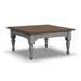 Relax with the family or entertain guests in cottage-inspired style with the Plymouth square coffee table. An ample planked tabletop surface offers the ideal place for drinks or magazines, while a weathered graywash finish and turned legs create a charming vintage look.