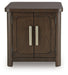 If casual contemporary style is your thing, then you'll love this end table. Its thick tabletop, softly rounded corners and rich wood-tone finish lend a soothing sensibility. A double-door cabinet and an adjustable shelf offer storage options to help keep everything well organized and out of sight. Sleek and smart, this piece is a fresh take on cool for the modern home.