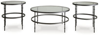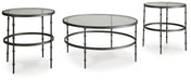 Details Includes coffee table and 2 end tables, Made with metal, Gunmetal finish, Inset tempered glass tabletops, Assembly required
