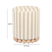 Meet the Dex Striped Linen Ottomans, a petite and playful addition to your space, combining fresh design with a tropical aesthetic. The solid wood spherical orbs on the base provide a unique aesthetic touch, ensuring a sturdy and stylish foundation. With washed linen-style cabana stripes, these ottomans bring a punch of personality to any space, offering additional seating or a stylish footrest. Available in Beige, Pastel Blue or Salmon Pink.