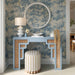 Dex Pastel Blue Striped Linen Ottoman