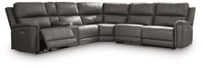 | Details | Includes 6 pieces: left-arm facing power recliner, armless chair, power armless recliner, console with storage, wedge and right-arm facing power recliner, One-touch power control with adjustable positions, Easy View™ adjustable headrest and zero-draw USB-A and USB-C ports, Zero-draw technology only consumes power when the USB receptacle is in use, Zero-gravity mechanism allows optimum reclining comfort with infinite reclining positions at the touch of a button, Corner-blocked frame with metal reinforced seat; attached back and seat cushions, High-quality foam cushions wrapped in poly fiber, 100% top grain leather covers inside areas such as the back, seat and arm cushions; skillfully matched faux leather covers the remaining areas, Due to its natural origin, real leather can show individual characteristics such as healed scars, growth marks, grain variation and shade variation, Natural variations make each hide unique and do not detract from the wearing qualities of leather, Console with 2 cup holders and hidden storage, Zero wall recliner design requires minimal space between wall and chair back, Zero gap mechanism maintains consistent lower back and lumbar support throughout every stage of reclining for the ultimate relaxation experience, Power cord included; UL Listed | |