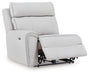 | Details | Includes 5 modular pieces: left-arm facing power recliner, power armless recliner, 2 consoles with storage and right-arm facing power recliner , "Left-arm" and "right-arm" describe the position of the arm when you face the piece, Versatile modular pieces fit together in a variety of configurations, One-touch power control with adjustable positions, Easy View™ adjustable headrest and zero-draw USB port, Zero-draw technology only consumes power when the USB receptacle is in use, Zero-gravity mechanism allows optimum reclining comfort with infinite reclining positions at the touch of a button, Corner-blocked frame with metal reinforced seat, Attached cushions, High-quality foam cushions wrapped in poly fiber, Polyester upholstery, Console with 2 cup holders and hidden storage, Power cord included; UL Listed | |