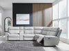 | Details | Includes 6 modular pieces: left-arm facing power recliner, power armless recliner, armless chair, wedge, console with storage and right-arm facing power recliner , "Left-arm" and "right-arm" describe the position of the arm when you face the piece, Versatile modular pieces fit together in a variety of configurations, One-touch power control with adjustable positions, Easy View™ adjustable headrest and zero-draw USB port, Zero-draw technology only consumes power when the USB receptacle is in use, Zero-gravity mechanism allows optimum reclining comfort with infinite reclining positions at the touch of a button, Corner-blocked frame with metal reinforced seat, Attached cushions, High-quality foam cushions wrapped in poly fiber, Polyester upholstery, Console with 2 cup holders and hidden storage, Power cord included; UL Listed | |