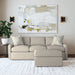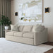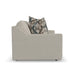 - A contemporary silhouette with soft, sloped arms and recessed legs