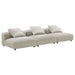 Revel in ultimate comfort and modern style with the Solace Modular 3-Seater Sofa. This oversized fabric sofa is perfect for any living room, offering endless flexibility. Its modular furniture design allows you to change the arrangement to suit the needs of the moment or expand your seating by adding more pieces in the future. Featuring a sturdy frame, dense foam padding, and a sinuous spring support system, the Solace 3-Piece Sofa grants a premium seating experience with its soft textured woven fabric upholstery. The comfy upholstery adds a cozy, casual vibe, making this armless sectional sofa a perfect addition to any living space or lounge area. Equipped with non-marking plastic glides and complementing accent pillows, this armless modular couch is both stylish and practical. With no assembly required, you can enjoy immediate relaxation with this 3 piece living room set. Set Includes: 3 Armless Chairs