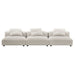 Revel in ultimate comfort and modern style with the Solace Modular 3-Seater Sofa. This oversized fabric sofa is perfect for any living room, offering endless flexibility. Its modular furniture design allows you to change the arrangement to suit the needs of the moment or expand your seating by adding more pieces in the future. Featuring a sturdy frame, dense foam padding, and a sinuous spring support system, the Solace 3-Piece Sofa grants a premium seating experience with its soft textured woven fabric upholstery. The comfy upholstery adds a cozy, casual vibe, making this armless sectional sofa a perfect addition to any living space or lounge area. Equipped with non-marking plastic glides and complementing accent pillows, this armless modular couch is both stylish and practical. With no assembly required, you can enjoy immediate relaxation with this 3 piece living room set. Set Includes: 3 Armless Chairs