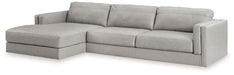 Keen on crisp, contemporary design? Adore the pleasure of leather? Look no further. This sectional with chaise satisfies on every level. Richly textured and decadently supple, the plush cushions are wrapped with expertly matched leather and faux leather upholstery in an on-trend neutral tone. Sleek double-padded arms and a low, clean-lined profile complete this spacious sectional's simply chic appeal.