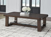 If casual contemporary style is your thing, then you'll love this coffee table. Its thick solid wood edge, softly rounded corners and dark wood-tone finish lend a soothing sensibility. Sleek and stylish, this piece is a fresh take on cool for the modern home.