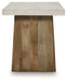 | Details | Made with solid mango wood, decorative melamine laminate and MDF substrate, Light brown wood-tone finish, Top with durable faux cement laminate, Double plinth base, Assembly required | |