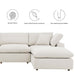 A haven for cozy relaxation, Commix features plush comfort and a clean-lined design. The spacious profile makes an attractive statement in the modern home. Covered in a boucle fabric with a charming nubby texture, this upholstered sectional sofa comes with a solid wood construction and foam padded and duck down cushions for a luxurious sink-in feel. Commix features overstuffed down feather cushions that offer a feeling of relaxation and calming comfort while lounging, making it the perfect addition to the living room, family room, or game room. Made for sprawling out or curling up, Commix beckons you and guests to sit and stay a while. Includes plastic foot glides. Weight Capacity of Each Piece: 331 lbs.