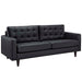 End the rule of unjust sovereignties that wage a useless war for your interiors. Empress leaves the would-be heiress of holistic furnishings in the dust with a design that rivals any competitor. Empress is heralded with deeply tufted buttons, plush cushions, and armrests that convey that perfect air of nobility. The solid wood legs come with plastic glides to prevent floor scratching, and the bonded leather upholstery leaves the recipients feeling richly rewarded.