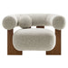 With a nod to retro aesthetics, the Jace Accent Chair stands out with its modern lines and inviting presence. This sofa chair features a curved U-shaped backrest and is supported by three sturdy ash wood legs that feature a rectangular, open-frame that mirrors the chair's chic aesthetic. Upholstered in textured boucle fabric with a tightly looped design that adds depth and visual interest, the Jace Single Sofa Chair complements both vintage and contemporary decor. The generously padded oversized seat of this barrel accent chair provides ultimate comfort, while the included round accent pillow adds an extra touch of style and support. Whether you�re looking for a comfy living room chair, a reading chair for the bedroom, or a statement chair for a cozy corner, this round back club chair updates your home decor. Equipped with plastic glides that offer floor protection, the Jace Round Boucle Armchair requires no assembly, allowing you to enjoy this stylish oversized chair as soon as it arrives. Weight Capacity: 331 lbs.