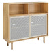 Featured-0 Modern Display Cabinet Metal Mesh Sliding Doors MDF and Particleboard Sturdy Wood Legs Non-Marking Foot Pads Assembly Required Weight Capacity: 181 lbs.