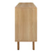 Bring urban flare to your living space with the modern design of the Kurtis 59" Sideboard. Featuring sliding metal mesh doors, this storage cabinet brings industrial design to a dining room, living room, lounge area, or hallway. This versatile display cabinet is crafted from MDF and particleboard with a natural wood grain design. Offering ample storage space for dishes, stemware, bar essentials, linens, or anything else that suits your needs, this credenza features open shelving areas partially concealed by mesh sliding doors allowing for both storage and display. Resting on sturdy wood legs with non-marking felt pads to protect flooring, this sideboard doubles as a TV stand that can accommodate TVs up to 65 inches. Assembly required. Weight Capacity: 181 lbs. Please Note: When placing the TV directly on the unit, we recommend anchoring it in place.