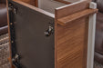 Bring timeless inspiration to your living room. Our Lincoln table was crafted with the works of influential architect Frank Lloyd Wright in mind, to bring timeless style to the present. A clean stone like top perched atop a show-stopping trestle base in a rich walnut finish, this accent table is heirloom quality built for the everyday. Designed for elegance and utility, the Lincoln has an open compartment that can be used for storage. The durability you need, with artisan details you want. It’s all possible with Lincoln.